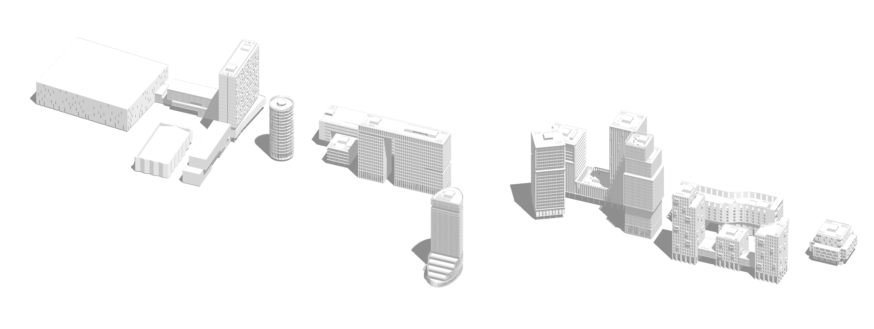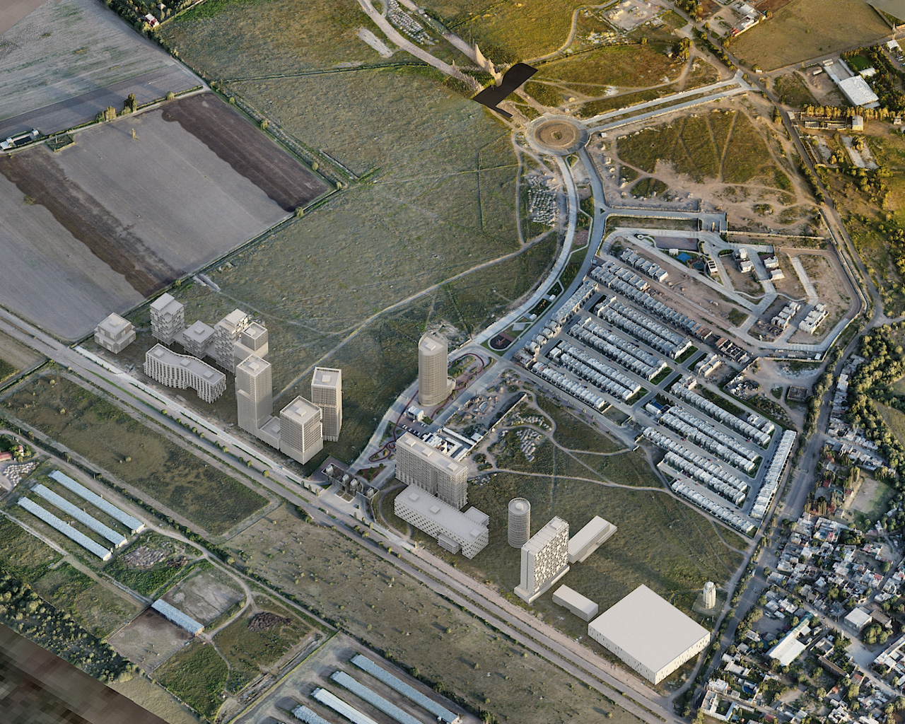 A master plan was developed based on two principles: re-densification and mixed-use land. It consists of a set of buildings: multifamily housing on the upper floors and services such as a supermarket, offices, a shopping center, a hotel, and a hospital at street level.