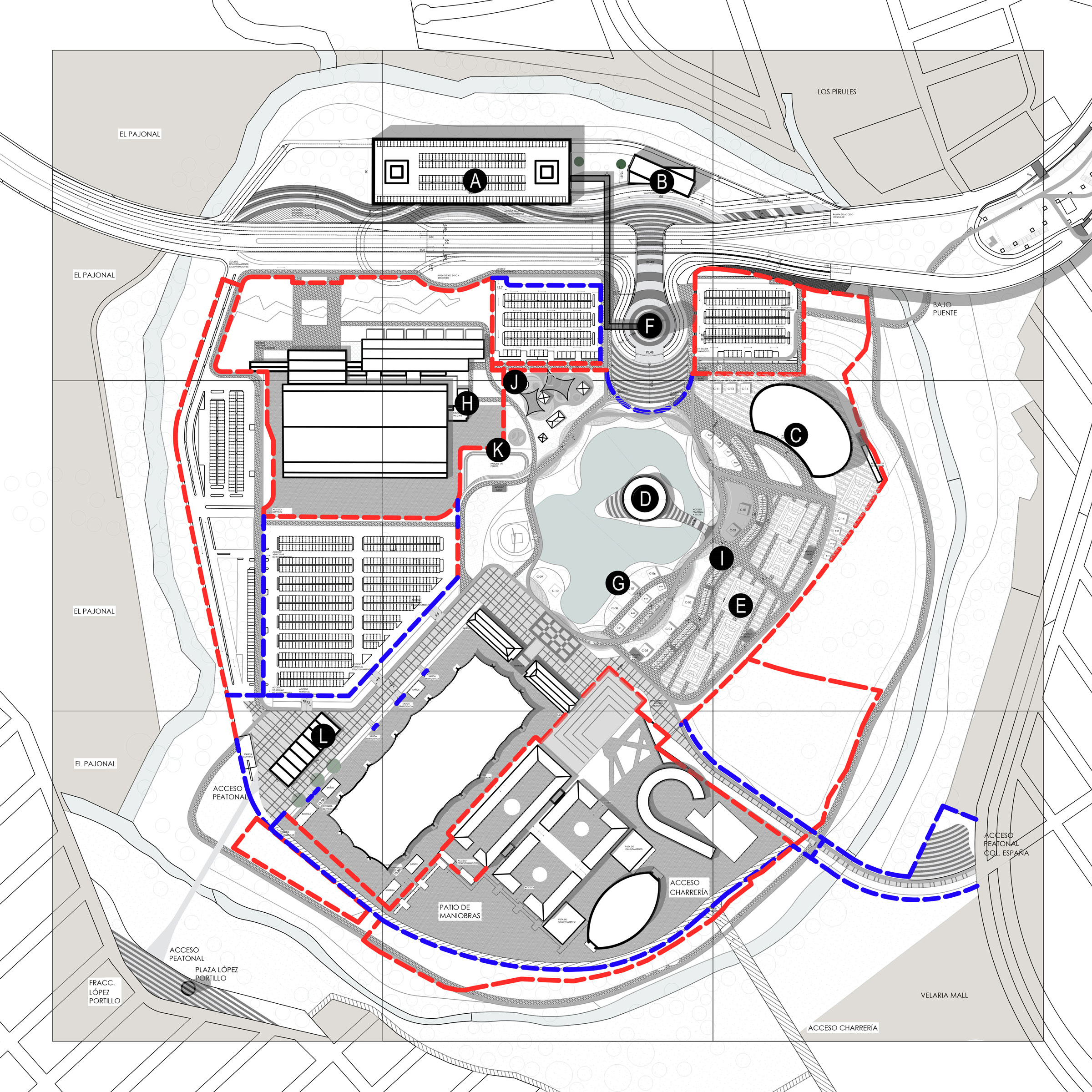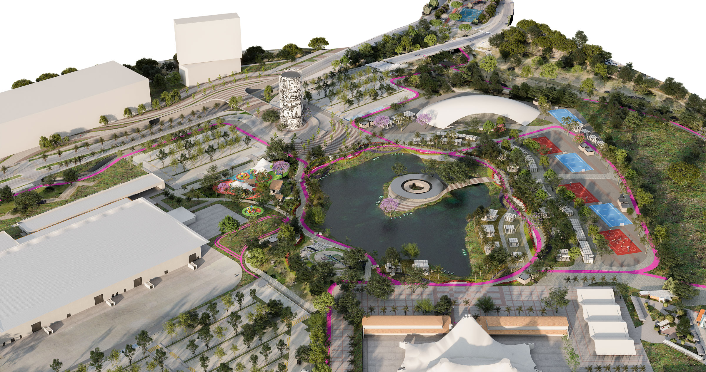 The proposed new uses are: Vertical Parking, Hotel, Multi-Sports Hub aimed at attracting national and international sports events, Regional Gastronomic Center, Temporary Sports Courts, Monumental Access Landmark, Medium and Large Stalls Area, Tailgate Kitchen, New Lotting of Permanent Commercial Stalls, Children's Playground, Pet Area and a new Medium Events Canopy.