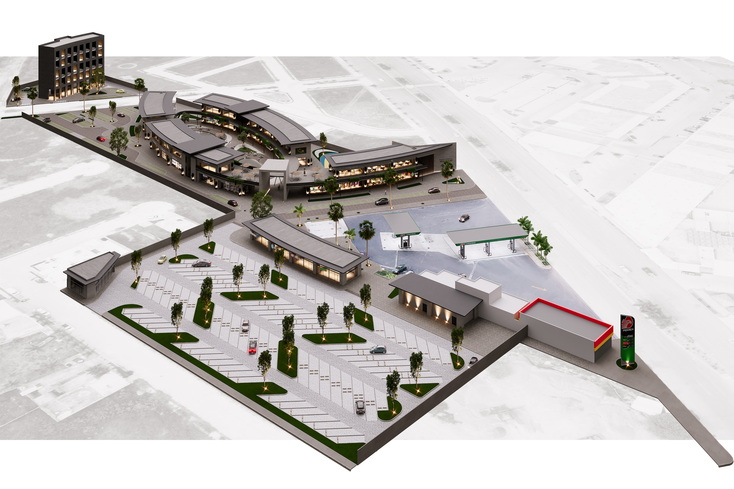 The commercial buildings are one and two stories high, consisting of units with an average area of 86.00 square meters, with the possibility of subdividing each into two units averaging 43 square meters. The complex is equipped with various parking areas, providing a total of 188 parking spaces.