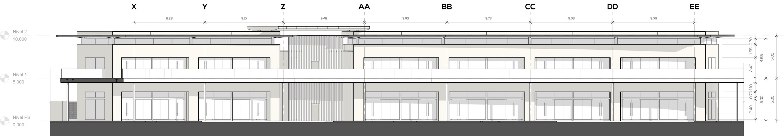 A large central courtyard enhances the public space, allowing users to leave their vehicles behind and enjoy a shopping center that is 100% pedestrian-friendly. Additionally, the project's orientation ensures an appropriate response to direct solar exposure, creating comfortable and livable spaces for extended periods.